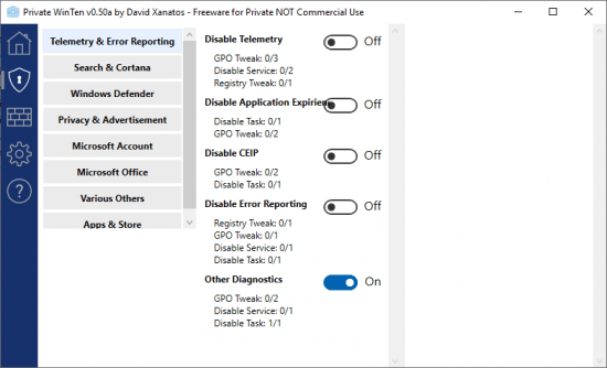 A new feature called Tweak Guard monitors the state of the applied privacy tweaks and warns, or re applies (depending on the setting) when a tweak has been un done.